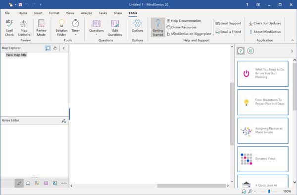 “入门” : MindGenius 20附带一个免费的“入门”包,各种下拉菜单提供了各种模板,可以使您的MindGenius Journey进入正确的起点。