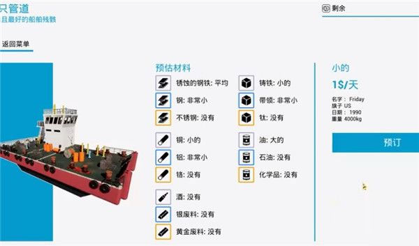 3、将整艘船拆除殆尽,出售获得的各类部件,用所得升级你的设备。