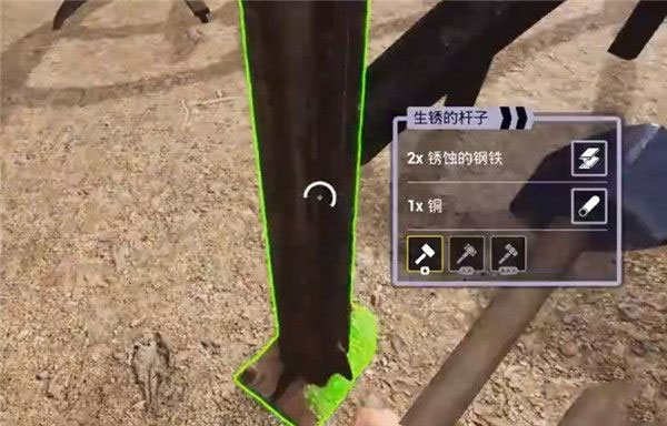 5、看到一根生锈的杆子,可以使用锤子把它给分解,可以查看到杆子的组成。