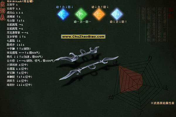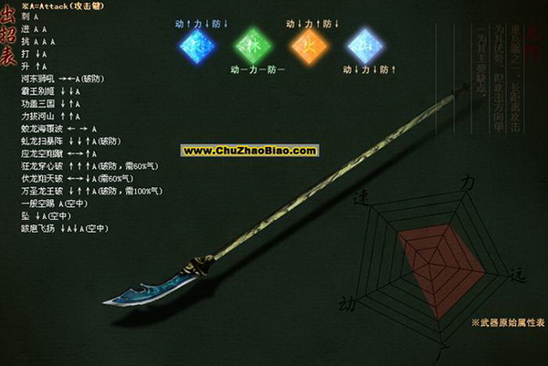 - 连招组合:刺、进、挑、打等基本动作,配合升、河东狮吼等高级技能。