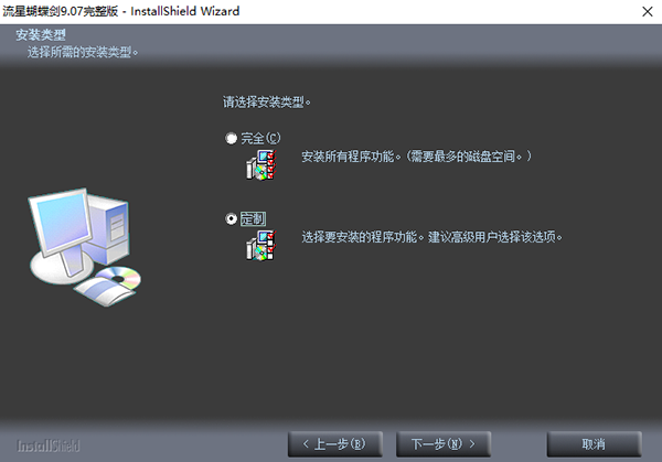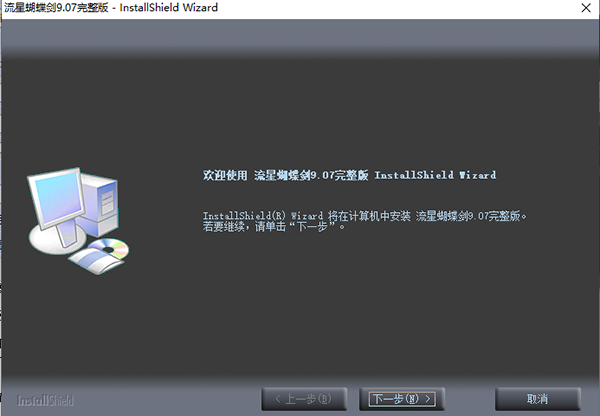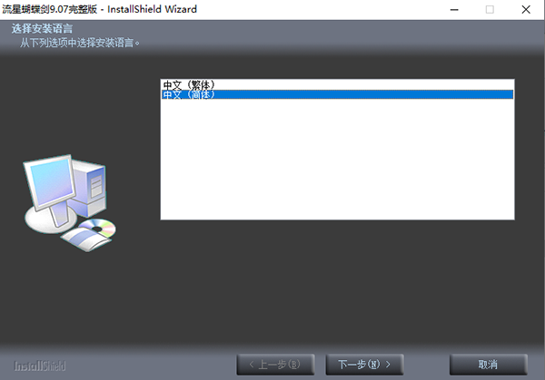 2、点击“流星蝴蝶剑9.07完整版.exe”开始安装,首先是选择安装语言,这里小编选择了简体中文,点击下一步;