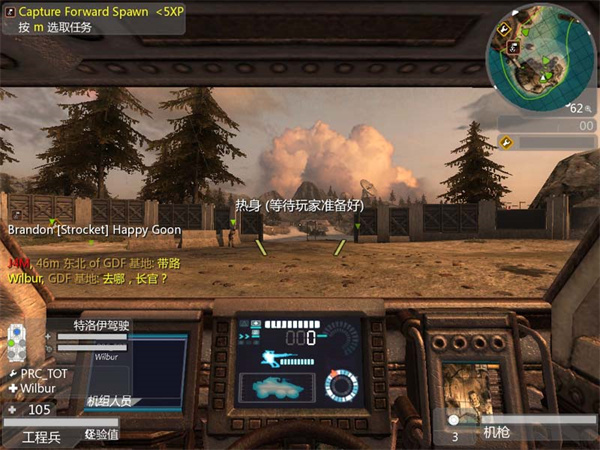 以工兵进入游戏,找到附近的越野车马上上车,来到桥梁维修点(1号位),在友军的掩护下,可以顺利的把桥梁修好。然后就是跟着MPC边维修边推进,让它进入指定地点展开(2号位)。换成追击手,顶着敌人炮火来到保护罩发生器旁截取数据(3号位),破环发生器系统,不需要跟敌军过多纠缠。最后换成士兵进入敌人基地摧毁主控电脑(4号位),顶着敌军的人海战术,只要有机会便过去主控电脑安放炸弹。安放炸弹后,也不要松懈,敌人工兵随时会过来把炸弹拆除。坚持到最后的爆炸。
