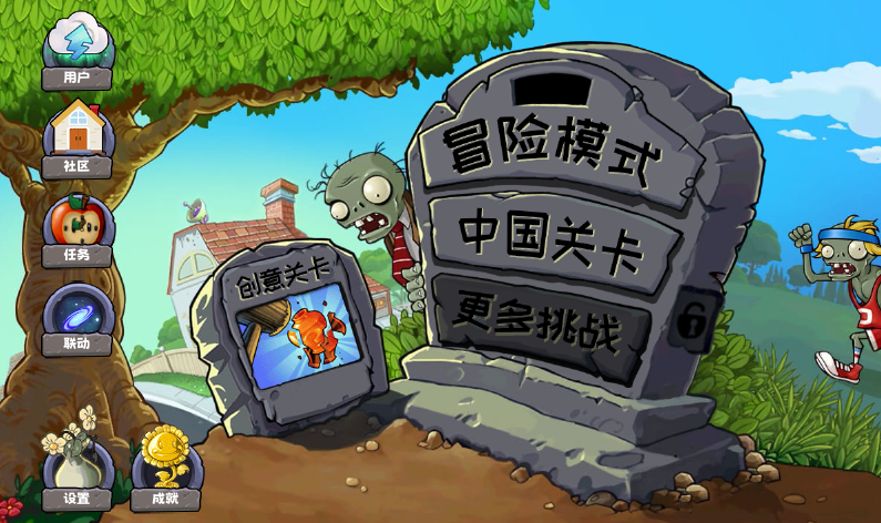 不使用坚果和高坚果,完成迷你游戏中的【植物僵尸】关卡