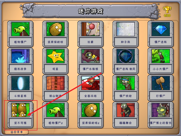 通关解锁迷你游戏“坚不可摧”,植物大战僵尸冒险关卡的金盏花产了几个金币之后就不会再生产金币所以选择这关小游戏,每次通关至少有七到八千的金币收益。