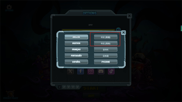 3、游戏支持多种语言,你可以设置简体中文或繁体中文语言;
