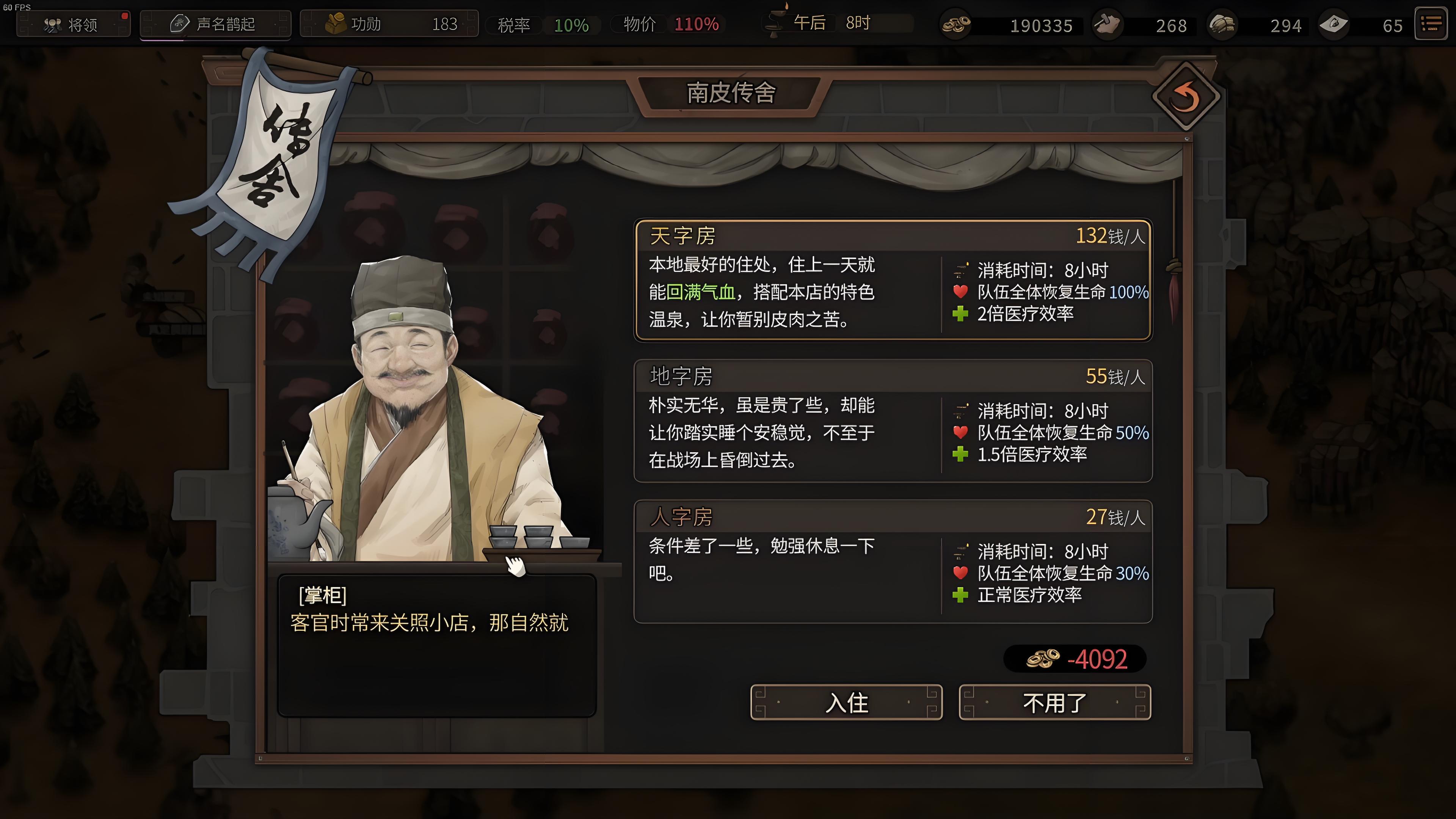 基于历史设计了一套拟真的世家大族系统,玩家可造访每个城市的豪族来访问,还为和其交好的话会被门卫拦住,选择第二个选项然后交钱即可,这里建议先去洛阳,这里是袁家一族的地盘,无需交钱便可进入。