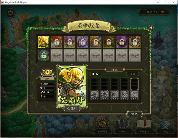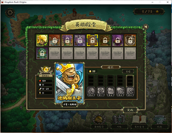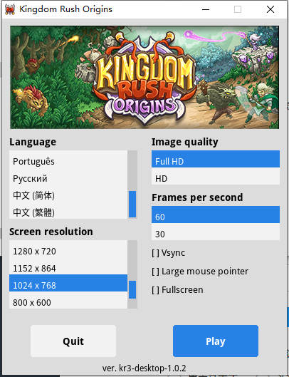 1、点击Kingdom Rush Origins.exe进入游戏的初始位置中,有基本的设置选项,玩家们根基自己的需求,选择相对应的基本功能吧,选好了就可以开始游戏了。