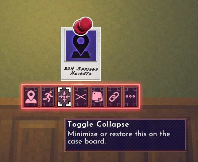 首先,将鼠标悬停在证物图钉上。稍等片刻,下方会出现一个菜单。