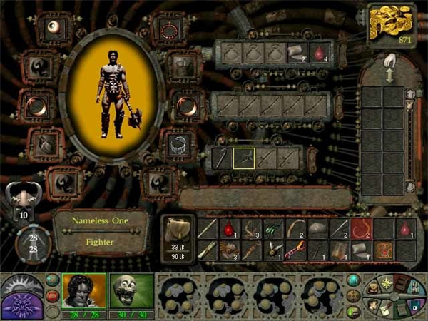 在游戏中有着大量的场景地图,荒凉压抑的外星荒漠,热闹喧哗的繁华都市,阴深幽暗的地下墓穴,庞大庄严的古代要塞,这些堪称精品的场景玩家都可进入并在其中完成任务。此外,游戏为用户提供各种奇妙的道具,可以说主角的任何部位在游戏中都有着可寻找的装备替换,包括眼珠、牙齿和骨骼等,其他的诸如每高念一遍咒语就能得到33块钱的耳环,防御等级加一、附加50%防火效果的耗子尾巴,提高敏捷度25%的死人手指骨等等一些奇怪的道具在游戏中都会出现。异域镇魂曲共有战士、法师、盗贼和牧师四个职业可供选择,玩家可通过与特定的人物交谈而转换职业。