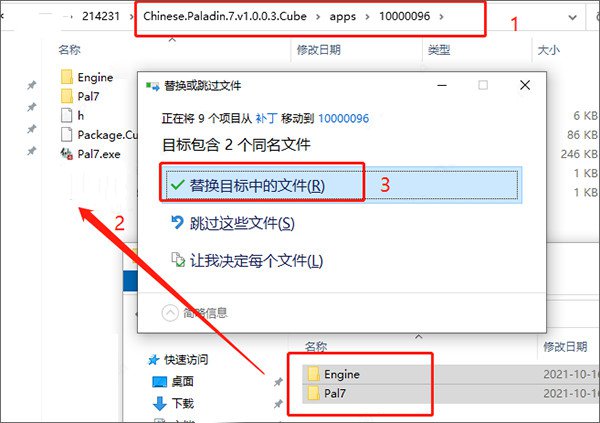 2、接着再将本站所提供的仙剑奇侠传7破解补丁进行解压,然后复制到其中的apps\10000096中进行替换;