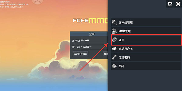 4、游戏账号注册∶点击游戏右上角三道杠,点击注册注册账号。