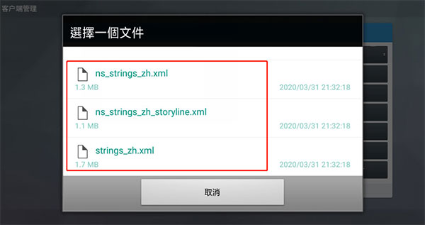 找到【1CCPLAY】- 【bazaar】-【temp】-【AApokemmo】-【AAHanhua】路径,分别依次导入三个汉化包【ns_strings_zh.xml 】、【ns_strings_zh_storyline.xml】【strings_zh.xml】