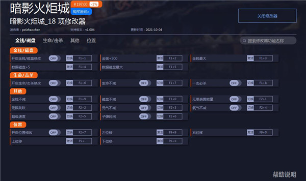 3、开启修改器各主初始项再使用各子修改项[无主初始项则不用开启][主初始项:如开启修改]。