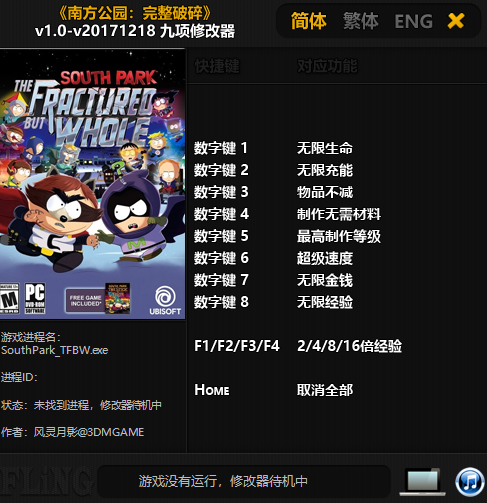 南方公园完整破碎修改器是由国内大神风灵月影所开发出来同名游戏的一个多功能修改器,它的功能都是非常的实用,使用它你能够无限的抽奖,直接硬扛boos的攻击,无限的使用出威力巨大的魔法,并且还能够帮你加速跑路,减小游戏所花的时间,还有着能够帮你快速升级的多倍经验,这些功能是不是非常的实用呢,如果喜欢可以下载!!!