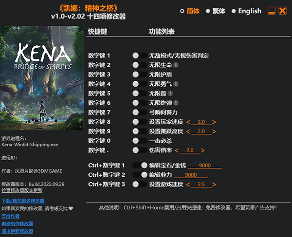 柯娜精神之桥修改器是一款专为《柯娜精神之桥》电脑游戏所打造的多功能修改器,它具有无敌模式/无视伤害判定、无限护盾、无限箭、弓瞬间蓄力、设置跳跃高度等诸多修改功能,可助力玩家轻松进行游戏。有需要的玩家欢迎下载体验。
