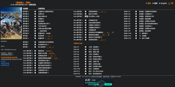 怪物猎人荒野修改器是一款专门针对《怪物猎人荒野》游戏所推出的游戏数值修改器,它内置六十一项不同的修改功能,玩家可拥有无限生命、无限耐力、百分百暴击率等属性,还可进行编辑金钱、编辑物品箱物品数量等操作,将让玩家在充满猛兽的大自然中获得多方加持,让狩猎之旅更加简单可玩。