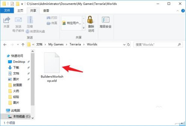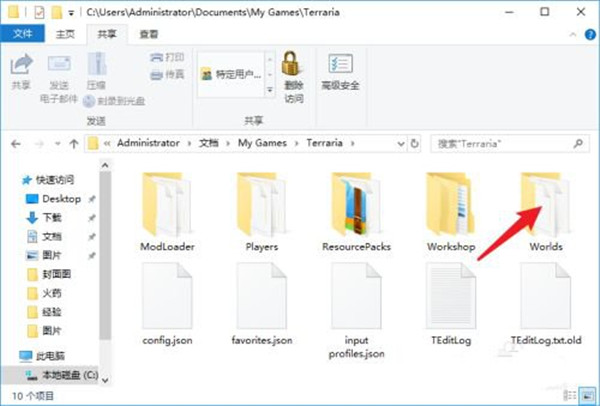 5、复制泰拉瑞亚1.4全物品存档,粘贴到Worlds文件夹;
