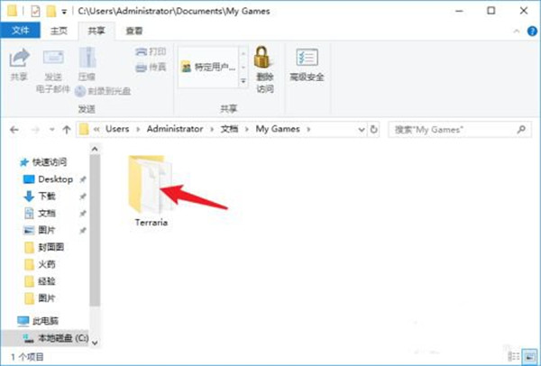 3、找到【Terraria】文件夹,打开此文件夹;