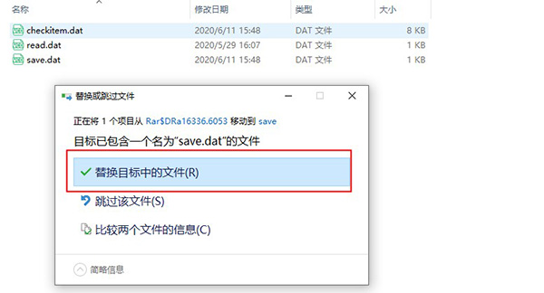 3、由于拥有同名的文件提示是不是要替换,选择替换即可;
