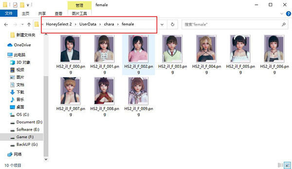 确认无误之后,把角色卡放到\HoneySelect 2\UserData\chara\female文件夹中即可。