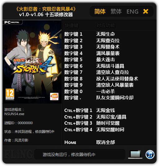 数字键 1 - 无限生命数字键 2 - 无限查克拉