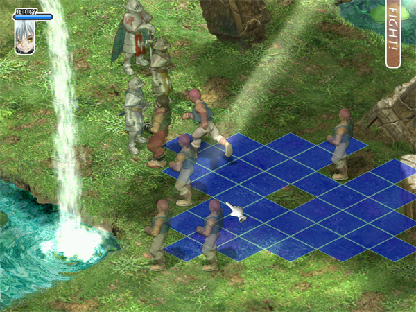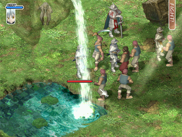 混沌之光骑士团的小队长麦斯威尔带着几个菜鸟骑士站在废墟外等候着,约克夏博士终于一脸兴奋地走了出来,看样子是找到了什么有价值的东西。骑士们保护着他正要离开,突然有六条看起来傻乎乎的大汉跳到前面的路中央:“我们是‘纯找碴’盗贼团!交出‘愚者日记’就可以不死!”约克夏脸吓白了,死死抱着刚找到的“愚者日记”叫道:“干掉这些家伙我重重有赏!”骑士们顿时一窝蜂地涌了上去,和盗贼们乒乒乓乓打了起来。一个回合之后,从暗处突然钻出一个嬉皮笑脸的少年来,并进入到战团中搅局(注1),盗贼头子布鲁斯一眼认出刚才就是这个少年怂恿自己来抢夺“愚者日记”,现在发现他居然身手狠辣连连向自己的手下攻击,不由得气急败坏,终于不敌对手,大叫一声:“A计划失败!实施B计划!”就带领残余的盗贼溜掉了。战斗结束之后,少年杰瑞和菜鸟骑士马修和约克夏对话,分别得到“万能血清”和50布朗。接下来杰瑞开始欺骗麦斯威尔(对话选择“该行动了”),让他去追击盗贼团,果然一说就灵。麦斯威尔离开后,杰瑞又开始对约克夏耍花招(注2),假冒自己是“愚者日记”作者的后代,顺利地将“愚者日记”骗到了手。