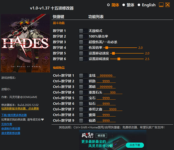 1、编辑物品功能在切换场景或买卖东西时生效。2、修改器只适用于64位游戏版本。