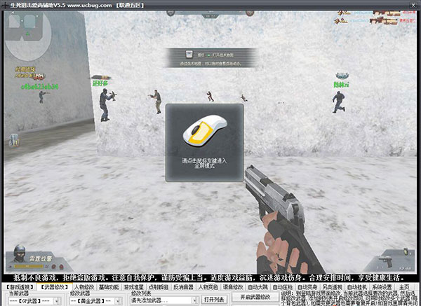 4、特别说明:在游戏房间开启改为登陆界面开启改枪就行了;