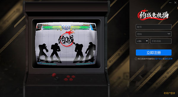 4、新手的话请使用手机注册一个新的约战竞技场账号,老用户直接使用用户名,密码登录即可
