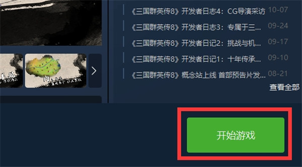 6、下载并安装完毕游戏后,右下角的按钮会变为“开始游戏”按钮;