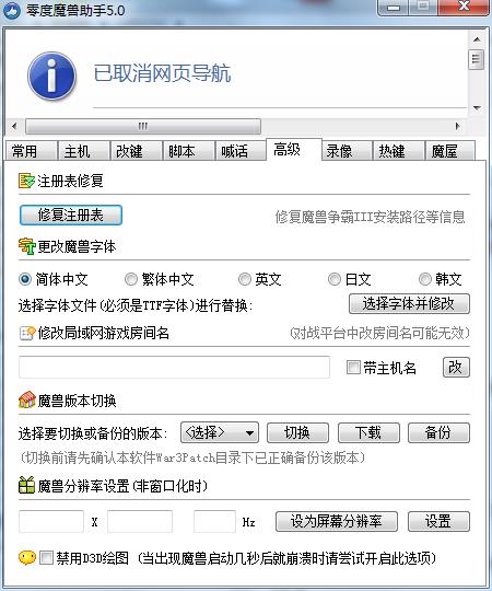支持一键修复注册表、更改魔兽字体、魔兽版本切换等