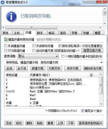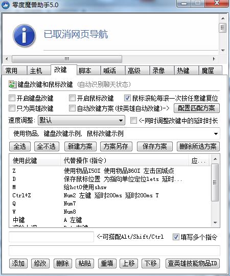 支持一键改变游戏中按键功能,如使用Z键,可使用物品、使用D键,可保存鼠标位置等,并支持技能改建