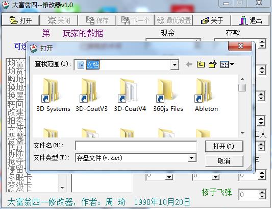 1、程序免安装,用户只需双击“richedit.exe”即可打开程序2、点击“打开”,选择大富翁4的安装目录
