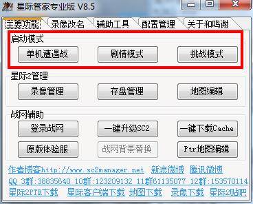 2、打开星际管家之后,选择程序要启动的模式,它支持单机遭遇战、剧情模式和挑战模式,如点击“单机遭遇战”