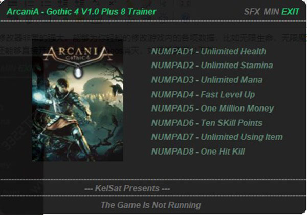 玩《哥特王朝4》的时候,要是觉得刷资源或者打BOSS太磨人,这个八项修改器绝对能让你爽翻天。它简直就是个作弊神器,能直接锁定你的生命、魔法和体力,让你在冒险时完全不用担心血量见底,那种横冲直撞的感觉真的太解压了。我特别喜欢它的一键百万金币功能,再也不用辛辛苦苦攒钱买装备,看到好东西直接拿下,购物欲得到极大满足。而且对于那些血厚的BOSS,开启一击必杀简直不要太轻松,一刀解决战斗,省时又省力。操作起来也特别简单,下载解压后,先开修改器再进游戏,用小键盘的数字键就能激活各种功能,比如快速升级和加技能点,能帮你跳过漫长的养成期,直接体验游戏后期的精彩内容。不过说实话,用了修改器可能会让游戏挑战性降低,少了一些原汁原味的探索乐趣,但对于想快速通关或者体验“无敌流”玩法的玩家来说,这绝对是个不可多得的好帮手。如果你正被游戏难度卡住,或者单纯想体验一把当“神仙”的快感,不妨试试这个修改器,它能让你以全新的方式享受这款经典RPG。哥特王朝4八项修改器是同名游戏《哥特王朝4》的一个多功能修改器,这个修改器非常的强大,能够为你轻松的修改游戏内的各项数据,比如无限生命,无限魔法,无限体力等等,还能够直接修改出海量的金币,让你随意的挥霍,如果你嫌打boos麻烦还能够直接开启一击必杀,将boos消灭,如果需要可以下载!! 使用说明 1、首先下载修改器并进行解压 2、运行修改器 3、运行游戏 4、使用热键修改游戏 热键说明 NUMPAD1-无限生命 NUMPAD2-无限精力 NUMPAD3-无限魔法 NUMPAD4-快速升级 NUMPAD5-一百万金钱 NUMPAD6-十点技能点 NUMPAD7-物品无限使用 NUMPAD8-一击必杀
