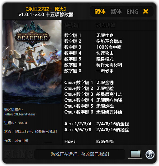 永恒之柱2死亡之火修改器是一款专为角色扮演类游戏《永恒之柱2死亡之火》所打造的多功能修改器,拥有无限生命、无限修理补给、100%命中率、2/4/8/16倍经验等修改功能,帮助您降低上手难度,收获更好地体验!