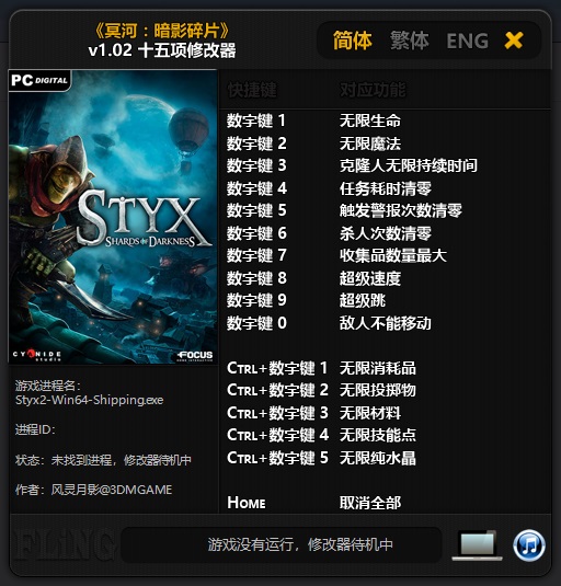 3、“无限技能点”和“无限纯水晶”如果在某个菜单界面中激活,可能要关一下菜单才会生效。