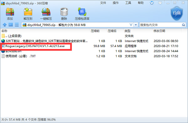 1、在本站下载压缩文件解压后将Rogue.Legacy.CHS.PATCH.V1.1-ALI213.exe文件移动到游戏目录
