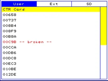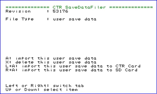 4、打开SDF后会看到如下界面,选择“CTR Card”按Y导出存档。如果,先去没有改美版存档名字就会显示“CTR Card——broken”不能导出(具体原因请自行百度)。
