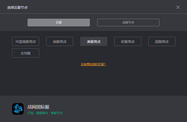 战网国服和国际服是不一样的,上方链接下载的是国际服,加速时也要选择“国服商店”以外的其他区服。