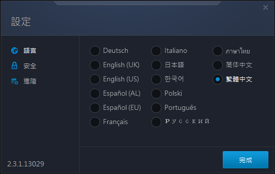 2、安装时选择繁体中文(重要),如果安装了其他语言,请在登录页面再手动将客户端语言设置调整为繁体中文(重要),并确认重启客户端。
