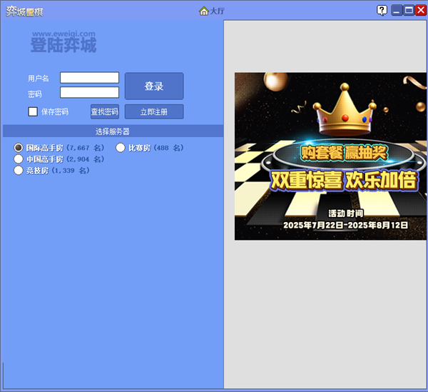 弈城围棋电脑版是TYGEM网站与日本和台湾围棋网站联合推出的围棋对弈软件,提供实时的围棋赛事相关资讯和围棋学习教程,并提供围棋新闻、弈城赛事、站内棋谱、站内热点、围棋资料、弈城江湖、弈城软件、围棋课堂、弈城论坛等栏目。玩家登陆弈城围棋,即可与中国、韩国、日本和台湾的棋友进行同步围棋对弈。弈城围棋与其他围棋程序最大的不同在于玩家可创建棋友会,当其他玩家成功加入棋友会后,在对弈的过程中玩家的ID就会显示棋友会会标。弈城官方会根据棋友会的活跃度等因素综合,不定期的调整个别棋友会的分类,有能力的棋友也可以召集棋友创建新的棋友会申请弈城官方通过,并且棋友会每周都会进行友谊赛,由组织者相约在特定的服务器两两捉对团体对抗,这是普通棋迷参加比赛的重要途径,欢迎有需要的朋友下载弈城围棋电脑版体验!