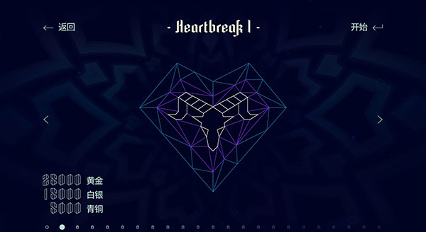 5、游戏的每一关都有一首专属的歌曲,关卡长度与歌曲时长一致,事实上,整个关卡的氛围营造都是围绕这首特定的歌曲展开的,这些曲子正是《再见狂野之心》核心内容的重要构成。Simogo 从 Betty Who、CHVRCHES、Taylor Swift 等音乐人的作品中吸取灵感,创作出了很多首动听的合成器流行(Synth Pop)风格的曲目;它们大都具有快节奏且爽快感突出的旋律,与画面中的色彩、特效、意象、表演等元素默契搭配,再与玩家手上的操作相结合,全方位地“入侵”到玩家的感官当中,构成了一种定位与 MV 类似、可互动性和参与感却又远超 MV 的复合体验。