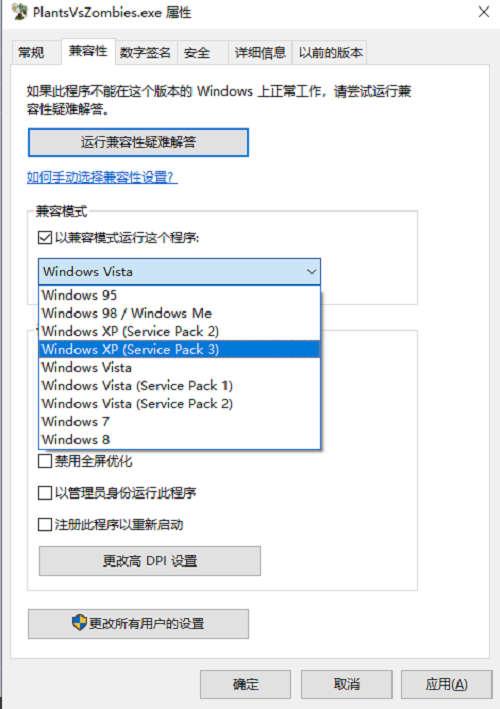 3、“选择兼容性”;