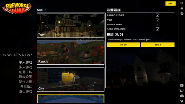 烟花模拟器(Fireworks Mania)是一款小型休闲爆炸模拟游戏,支持单人模式、多人联机模式。在这里玩家可以选择不同的场景,并将火箭烟花、组合烟花、鞭炮、烟雾弹、礼花弹、发射炮筒、管道烟花等系列任意放置在场景地图内,使用点火器点燃烟花即可释放,欣赏烟花在夜晚的天空上灿烂的花火!此外,你还可以在游戏中筹备属于你的烟火表演,体验不一样的乐趣!当然,烟花模拟器游戏还支持使用烟花炸毁地图中的内容,像房子、汽车等!