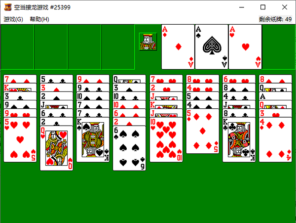 7、游戏最终,只有把牌从A到K摞列在右上方空框处,就算赢了。