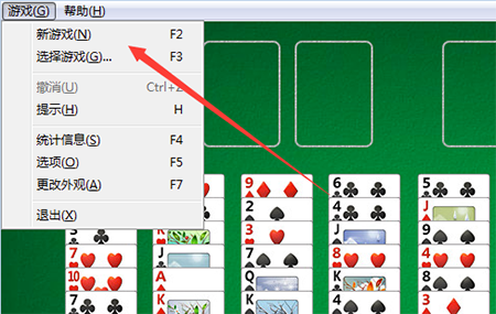 2、双击“freecell.exe”开始游戏,如果不满意牌组,可以点击游戏菜单,选择新游戏,重开一局。