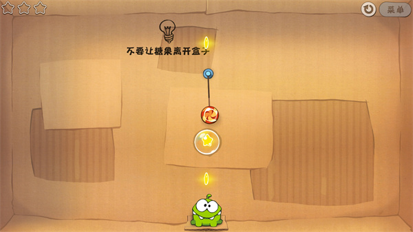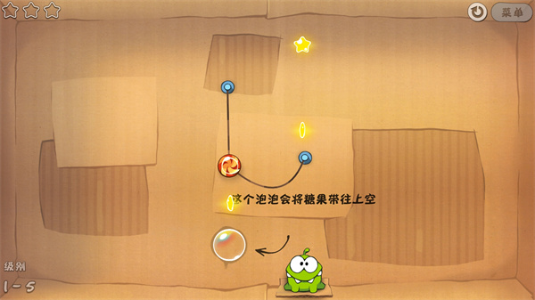 首先割断上方的绳子,坠入气泡中等气泡飘到最高处戳破糖果就径直掉到嘴里了;