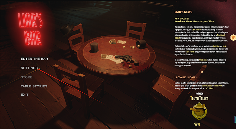 骗子酒吧(Liar's Bar)是一款风靡全球的多人在线策略游戏,玩家扮演动物角色,在充满谎言和欺骗的赌局中展开心理战。游戏有两种玩法模式:谎言卡牌和谎言骰子,考验撒谎技巧和心理承受能力,赢取信任或揭穿谎言都是制胜关键。
