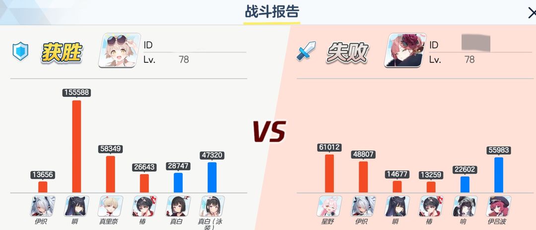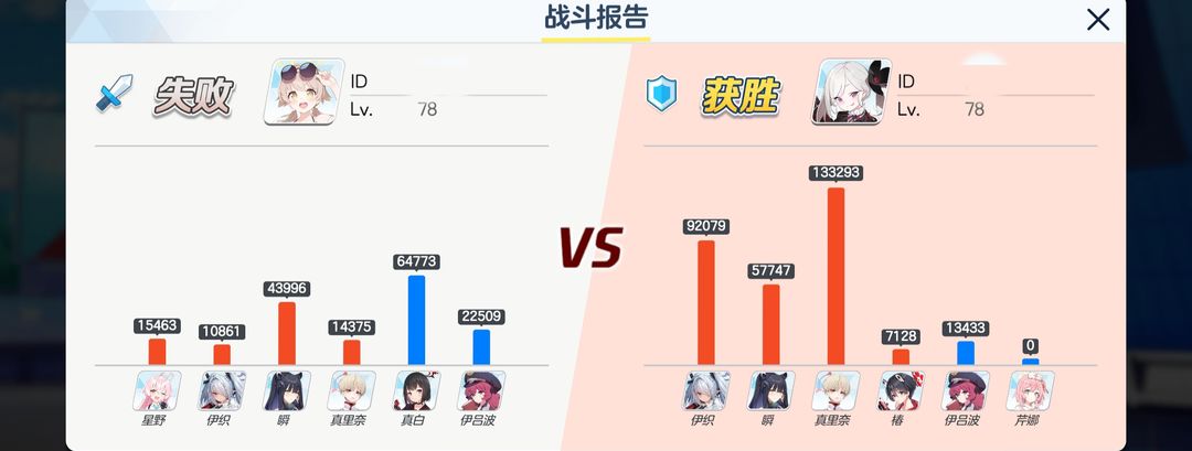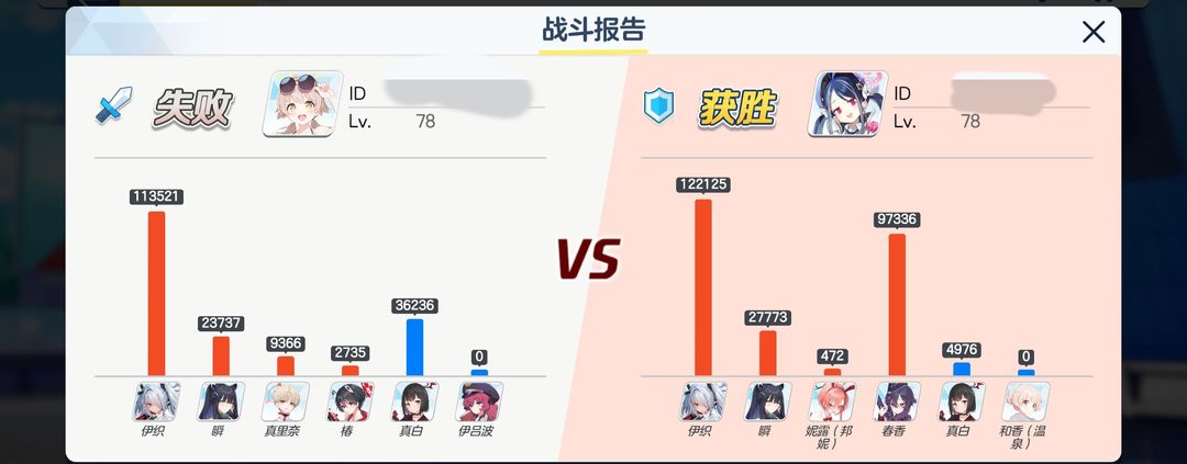 通过伊织,水真白与真白的高输出快速的处理对手的前排,真白无暴击伤害3w—4w左右,一段暴击是6w—7w,二段暴击10w以上打春香真理奈很有效,水真白降闪伊织处理狗盾与星野。